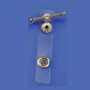 Clear Plastic Pin On Safety Badge Straps with LocksClear plastic badge strap comes with bar pin and safety lock. It can be used to hook up your ID card or name badge holders. The clear plastic safety badge strap comes with snap button can snap on your ID card or ID holder easily.